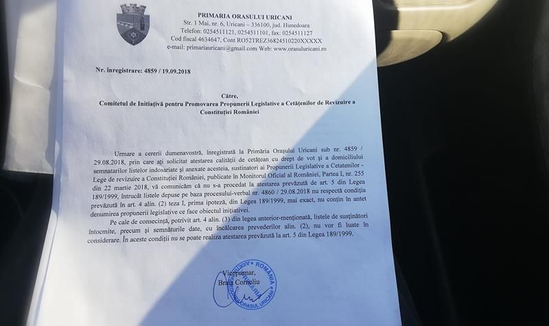 “În lege scrie că listele cu semnături trebuie să cuprindă două lucruri: publicarea în Monitorul Oficial șI denumirea obiectului inițiativei. La denumirea care face obiectul referendumului nu scrie nimic, nu scrie că e pentru penali, că e pentru altceva. Nu scrie nimic. În lege mai scrie că dacă nu sunt întreprinse una din cele două condiții, nu se iau în calcul. Astfel, listele au fost returnate, cu adresă oficială. Le-am dat numai la primul lot, la cel care cuprinde 133 de semnături și la al doilea lot o să le dau când vine termenul. Omul când semnează trebuie să se vadă pentru ce semnează”, a declarat Dănuț Buhăescu (PSD), primarul orașului Uricani.Potrivit reprezentantului USR, la Uricani au fost strânse 265 de semnături, în prima etapă 133, acestea fiind și cele anulate, și în a doua etapă 132, pentru acestea încă nefiind emis un răspuns de către Primăria orașului Uricani.