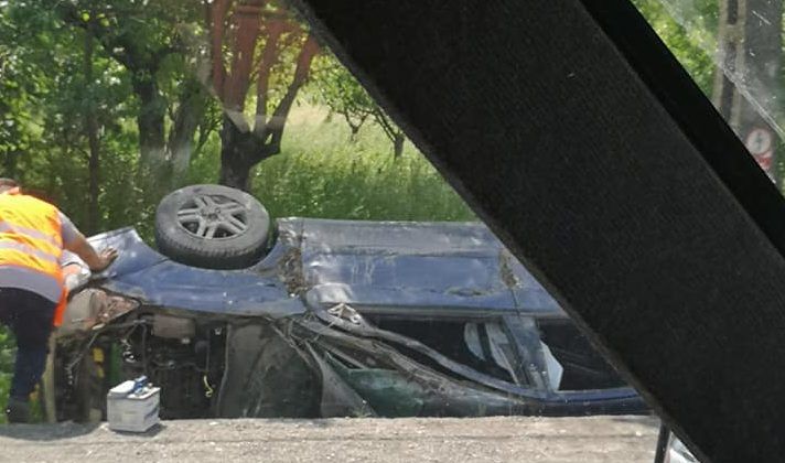 Accident cu trei răniți pe DN 7, la Leșnic. O mașină s-a răsturnat într-un șanț