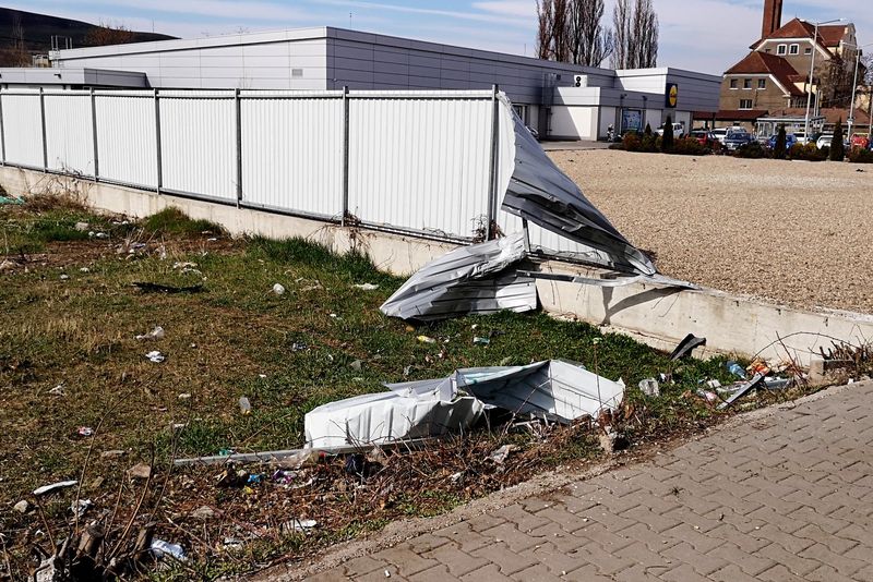 Accident spectaculos la Hunedoara. Un bolid cu volanul pe dreapta „a zburat” în gardul unui supermarket