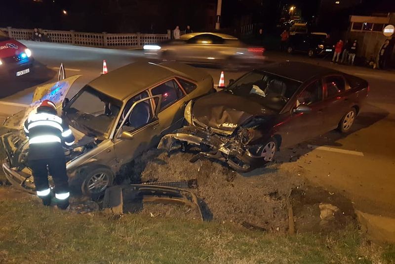 Două autoturisme s-au ciocnit frontal. În urma impactului violent cele două autovehicule implicate în coliziune au ajuns într-un șanț de pe marginea drumului. Pompieri și paramedicii SMURD care s-au deplasat la fața locului i-au acordat ajutor unei femei, în vârstă de 54 de ani, care se afla în stare de șoc.