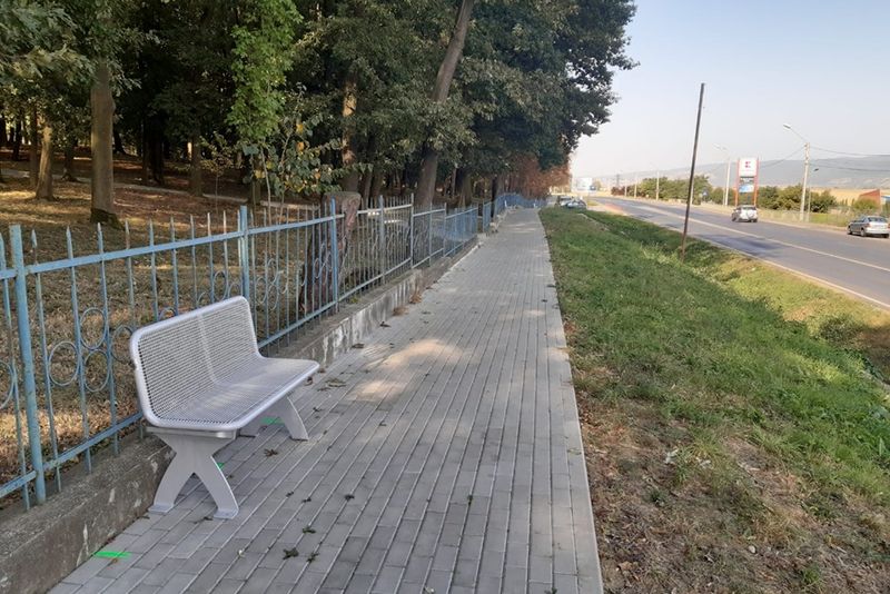 Pe aleea principală din parc s-au montat un număr de 17 bănci de două persoane și 34 bănci de trei persoane. De asemenea, pe trotuarul aflat în exteriorul parcului s-au montat patru bănci de odihnă pentru două persoane și o bancă pentru trei persoane.