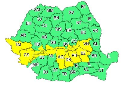 Fenomenele prognozate sunt intensificări puternice ale vântului, vijelii, grindină, cantități de apă însemnate. „La începutul intervalului în Moldova și Maramureș, apoi și în Transilvania, Crișana, local în Banat și nord-estul Munteniei, vor fi perioade în care vântul va avea intensificări puternice, cu rafale, în general, de 80...100 km/h, vor fi vijelii, frecvente descărcări electrice și averse torențiale. Îndeosebi în nord-vestul teritoriului se va semnala grindină de dimensiuni medii și mari, iar în intervale scurte de timp sau prin acumulare, se vor înregistra cantități de apă ce vor depăși 40 l/mp și izolat 50...60 l/mp”, a informat ANM. Atenționarea de Cod portocaliu va fi ridicată la noapte, când în vigoare va intra o altă avetizare, de tip Cod galben, valabilă, pentru sudul județului Hunedoara, până la ora 06:00. [caption id="attachment_67473" align="alignnone" width="435"]