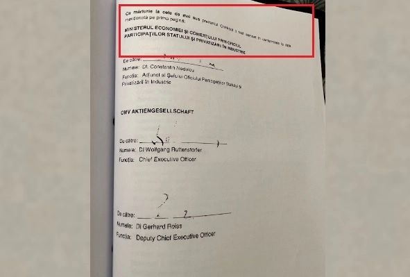 Contractul de privatizare a companiei Petrom a fost semnat la Palatul Victoria, in prezenta primului ministru de atunci Adrian Nastase si a ministrilor Dan Ioan Popescu si Martin Bartenstein, de seful Oficiului Participatiilor Statului si Privatizarii in Industrie, Constantin Nedelcu (D), presedintele OMV, Wofgang Ruttenstorfer (S), si vicepresedintele grupului austriac, Gerhard Rois.