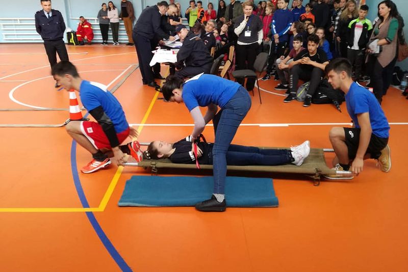Una dintre probe a constat în transportul asistat al unui accidentat aşezat pe o targă. Arbitrii au urmărit amplasarea victimei pe targă şi transportul acesteia, inclusiv peste un obstacol, în condiţii de siguranţă şi cu respectarea regulilor de prim ajutor medical.