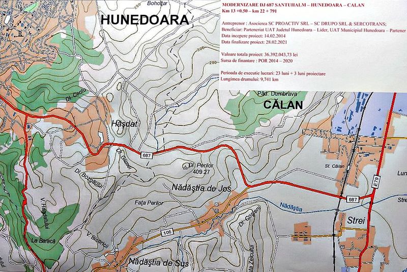 Contractul pentru modernizarea unuia dintre cele mai circulate drumuri din județul Hunedoara a fost semnat astăzi, 2 octombrie, la sediul Primăriei Hunedoara. Este vorba despre DJ 687, șoseaua cuprinsă între Sântuhalm, Hunedoara și Călan.