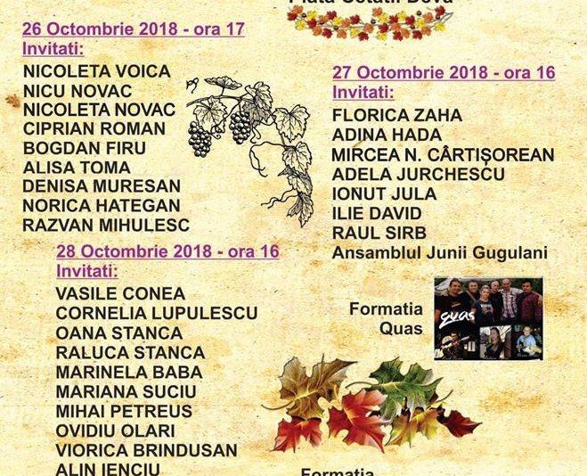 Locuitorii municipiului Deva sunt invitați, începând de astăzi și până duminică, la Festivalul Toamnei „Bob de strugure”, ce se desfășoară în piața de la poalele Cetății din oraș.