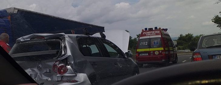 Poliţiştii spun că, şoferul autotrenului, un bărbat, în vârstă de 43 de ani, din Argeş, nu a păstrat o distanţă de siguranţă faţă de autoturismul din faţa sa, la volanul căruia se afla un devean, în vârstă de 51 de ani. Acesta din urmă a încetinit în zona de acţiune a indicatorului "Cedează trecerea", moment în care a fost lovit din spate de camion. În urma impactului, a rezultat rănirea şoferului maşinii.Victima era conştientă, în momentul în care echipajul de salvare a ajuns la faţa locului.[caption id="attachment_67836" align="alignnone" width="729"]