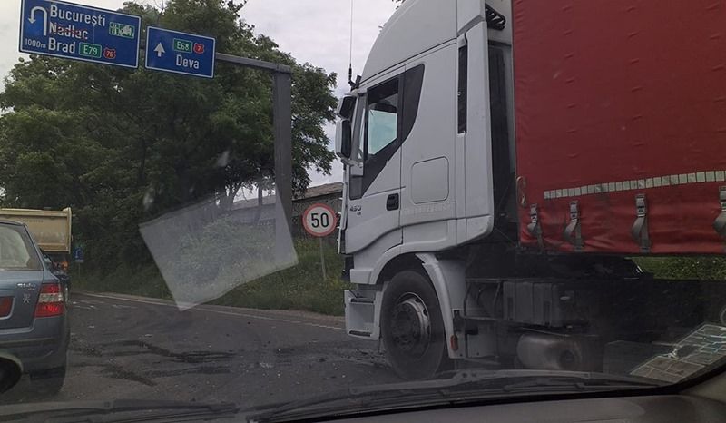 O persoană a suferit leziuni în urma unui accident de circulaţie ce s-a produs astăzi, în jurul orei 14:15, pe Drumul Naţional (DN) 7, la intrarea în Deva dinspre Mintia. Un camion ce transporta piese auto şi un autoturism au fost implicate în coliziune.