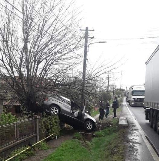 FOTO| Accident spectaculos la Mintia. O maşină s-a înfipt într-un copac şi un gard