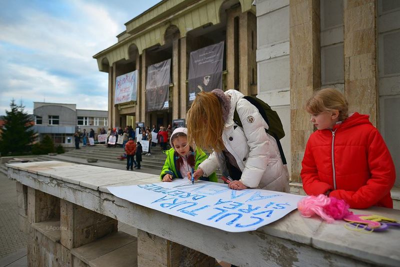 FOTO| Actorii Teatrului Dramatic „Ion D. Sîrbu” au continuat greva. „Apa trece, gunoaiele rămân!”
