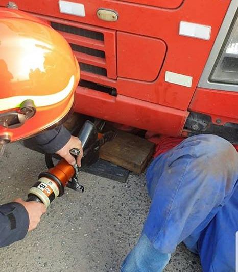 FOTO| Bărbat rămas captiv sub un autotren, salvat de pompieri