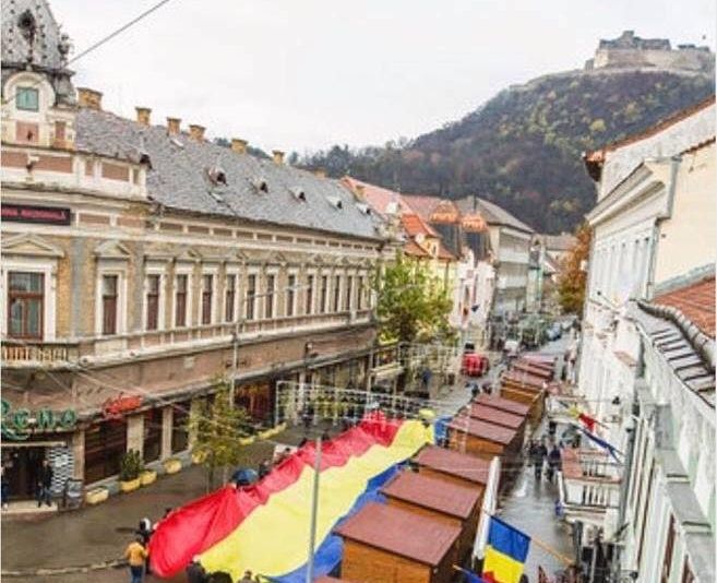 FOTO| „Caravana Tricolorul” a ajuns la Deva. Un drapel uriaş, purtat prin centrul vechi al oraşului