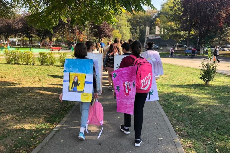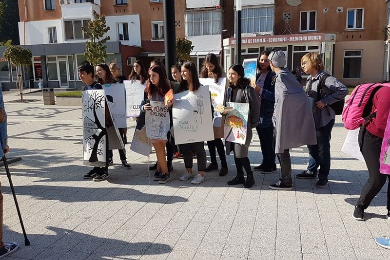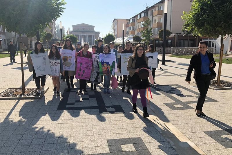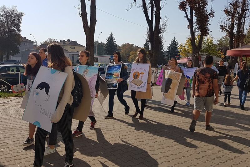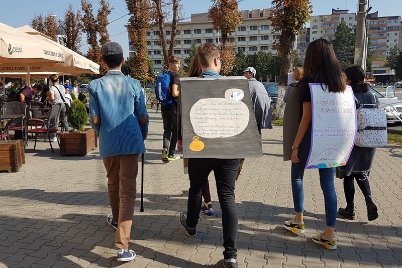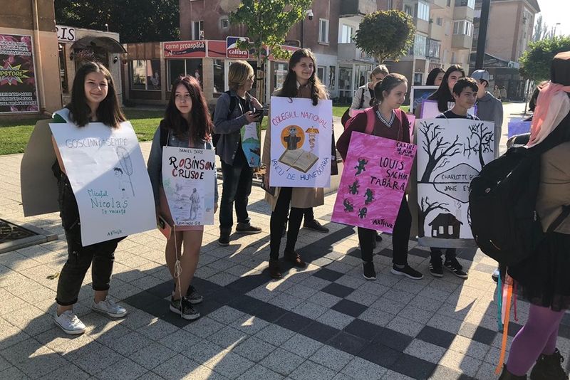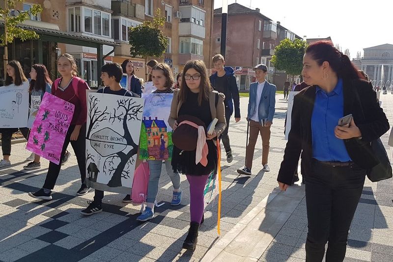 FOTO| Cărți „vii” pe străzile din Hunedoara. Zeci de elevi, într-un marș pentru promovarea lecturii