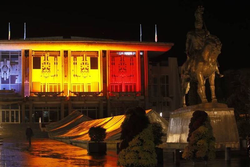FOTO| Clădirea fostei Case de Cultură din Deva, iluminată în culorile Tricolorului