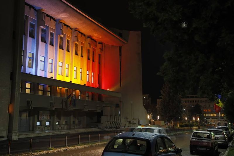 Timp de 40 de zile, până la sfârşitul anului, faţada şi intrarea laterală a clădirii Centrului Cultural „Drăgan Muntean” va fi iluminată în roşu, galben şi albastru.