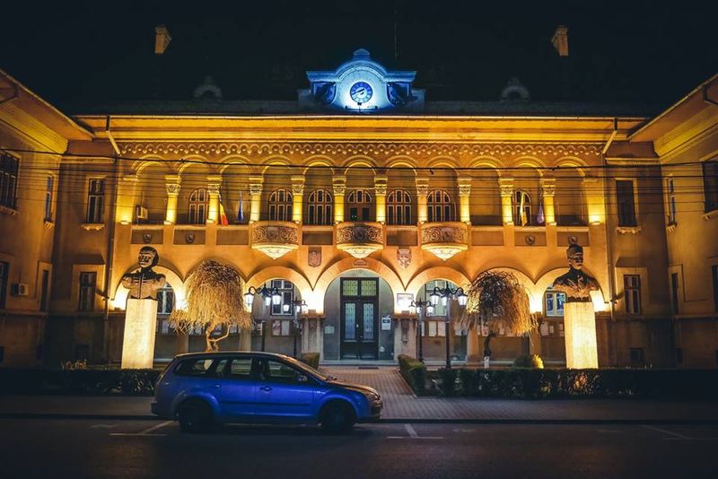FOTO| Clădirea Primăriei Hunedoara are iluminat arhitectural nou