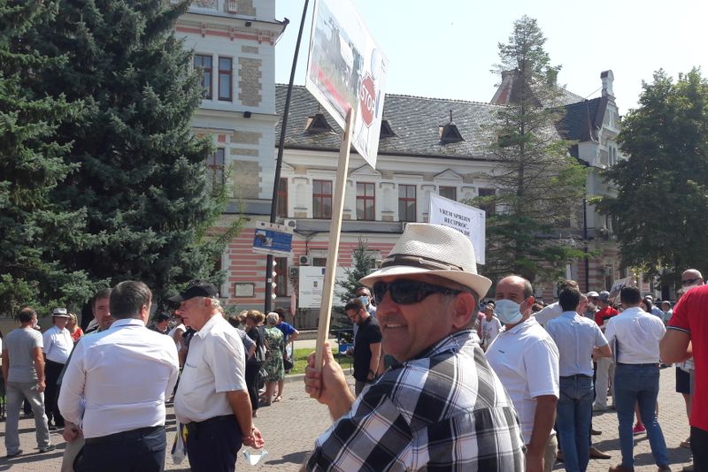 FOTO| Cu măști chirurgicale pe fețe, zeci de locuitori ai Orăștiei au protestat pașnic în fața Prefecturii și Gărzii de Mediu din Deva