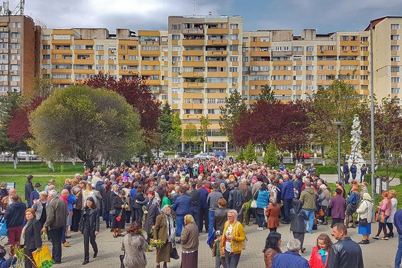 Oamenii au venit în număr mare în faţa Catedralei Eroilor din municipiu, pregătiţi să reconstruiască, şi în acest an, „Crucea de Flori”.