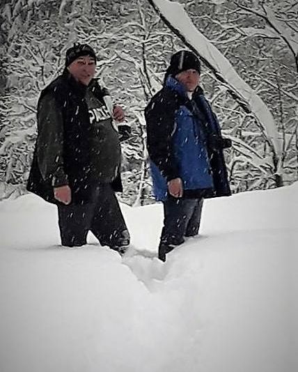 "Cipri face desagă din pungile cu mâncare și le zvârle pe spinare. Marius strâmbă din mustață dar deschide pârtia cu pasul lui cât doi ai noștri. Sorin lasă mașina și vine în urma noastră cu spor. Eu gâfâi și rămân la coadă. Încet dar bine. Zăpada trece bine de genunchi. Nici ninsoare, nici burniță, nici ploaie ne biciuie fețele. Greu. Fiecare pas e greu. Fiecare metru înaintat își cere tributul. Urcăm mai puțin de un kilometru în aproape o oră. Sudoarea curge, amestecată cu apa căzută din cer. Oare o mai găsim în pustietatea asta albă? Nu batem drumul degeaba? Lupii, singurătatea, foamea, oare nu au alungat-o de acolo? Nuuuu. Ea era acolo. Aștepta cuminte, singură, liniștită de parcă știa că vine cineva. Bucuria revederii a fost pe măsură iar ospățul și mai și. Ne priveam și ne bucuram că am reușit. Împreună pentru Fetița. Sarmizegetusa dormea liniștită sub omăt, păzită de cel mai credincios prieten. N-am zăbovit mult, pentru că negura se îngemăna cu albul zăpezii. La întoarcere a fost mai ușor. Sorin a făcut pârtie cu freza. Iar Fetița a venit după noi, până la mașină așteptând să plecăm. Noapte bună, suflet credincios. Pentru noi , nimic deosebit. Doar o simplă și obișnuită zi, în slujba Sarmizegetusei. Mulțumiri Cipri Lascoi, Stanila Marius, Zgavirdean Sorin pentru această slujbă”, a mai scris, pe Facebook, Vladimir Brilinsky.