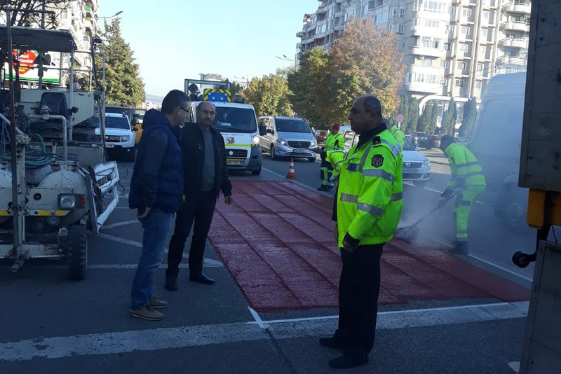 Prima zonă vizată în care a început să se toarne covor roșu termoplastic a fost stația de autobuz Opera, de pe Bulevardul Decebal din oraș. De acolo, echipele se vor apuca de treabă în zona stației de autobuz Ceangăi - Bulevardul 22 Decembrie.