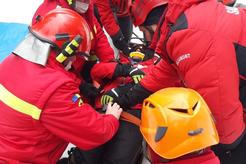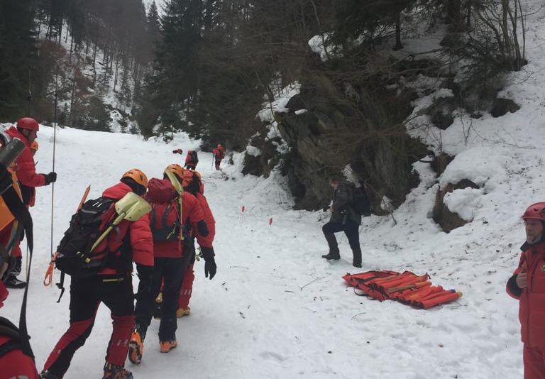 FOTO| Salvamontiștii au simulat o avalanșă în Parâng. Scenariul: patru turişti îngropaţi în nămeţi