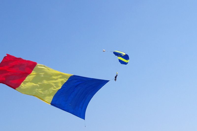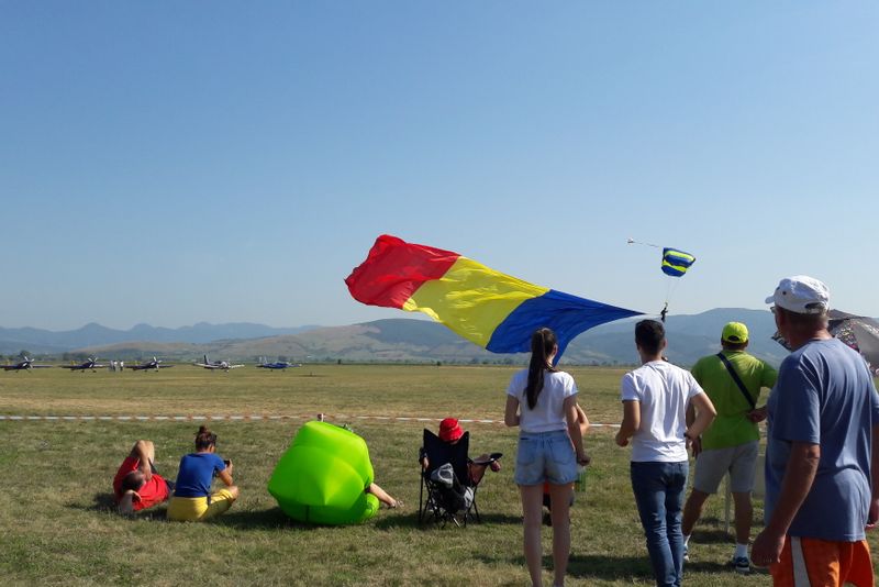Spectacolul pe cer a început la ora 10:00, cu apariția parașutiștilor.