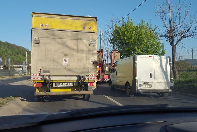 Tamponare între un camion şi o camionetă, în această dimineaţă, la ieşirea din Deva înspre Mintia, în zona „Izvor”.