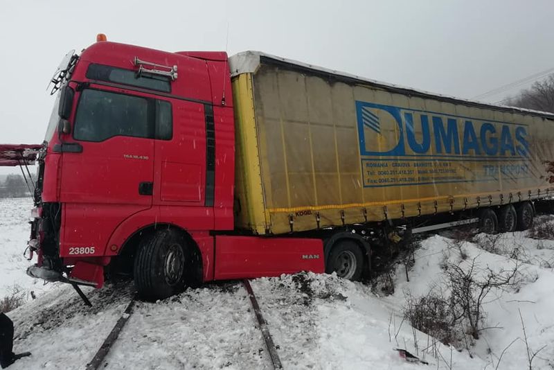 Incidentul s-a petrecut în această dimineață. Se pare că, șoferul autotrenului, care circula pe DN 68A, din cauza vitezei neadaptate la condițiile de drum, a pierdut controlul asupra direcției de mers, a părăsit partea carosabilă și a ajuns pe linia de cale ferată, blocând circulația trenurilor pe tronsonul Ilia -Lugoj.