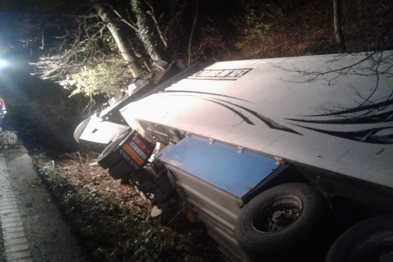 "Pompierii Detașamentului Deva și ai Secției Ilia, specializați în descarcerare, prim ajutor și stingere, precum și echipajul SAJ, au intervenit la accidentul rutier, în care a fost implicat un autotren înmatriculat în Ungaria, care a ieșit de pe drum, s-a răsturnat și s-a înfipt cu cabina într-un copac de pe marginea drumului. Operațiunea de extragere, din cabina autotrenului, a șoferului care, cel mai probabil, și-a pierdut viața pe loc, a fost dificilă. Impactul cu copacul a deformat și pliat acoperișul cabinei TIR-ului", a declarat, la rândul său, Anemona Doda, purtătorul de cuvânt al Inspectoratului pentru Situații de Urgență (ISU) Hunedoara.Din cauza accidentului, traficul a fost blocat temporar. O macara de mare tonaj a fost adusă în zonă pentru a ridica TIR-ul. Circulația a revenit la normal, azi noapte, în jurul orei 01:30. Polițiștii au deschis, în acest caz, un dosar penal pentru ucidere din culpă.