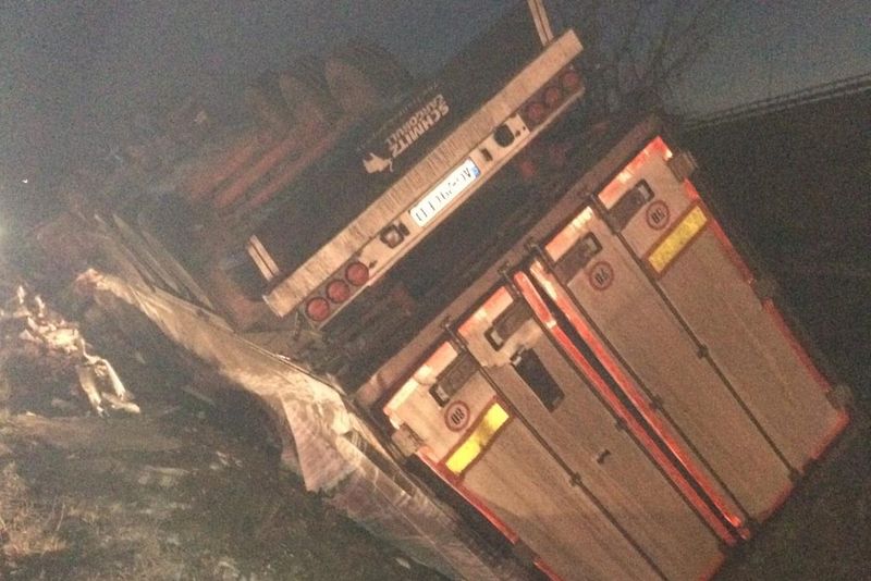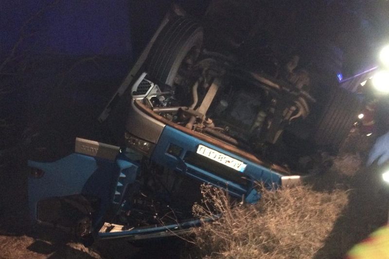 FOTO -VIDEO| TIR răsturnat pe DN 7, la intrarea în localitatea hunedoreană Gothatea. Şoferul a murit