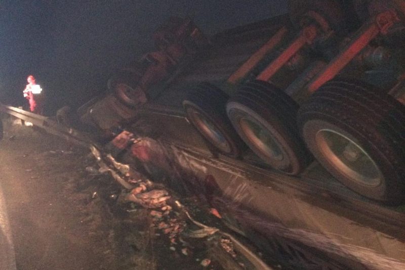 TIR-ul transporta carcase de porc şi se deplasa pe sensul Deva-Arad, fiind înmatriculat în judeţul Argeş. Traficul rutier nu a fost afectat. Cauza va fi stabilită de polițiști, în urma cercetărilor.