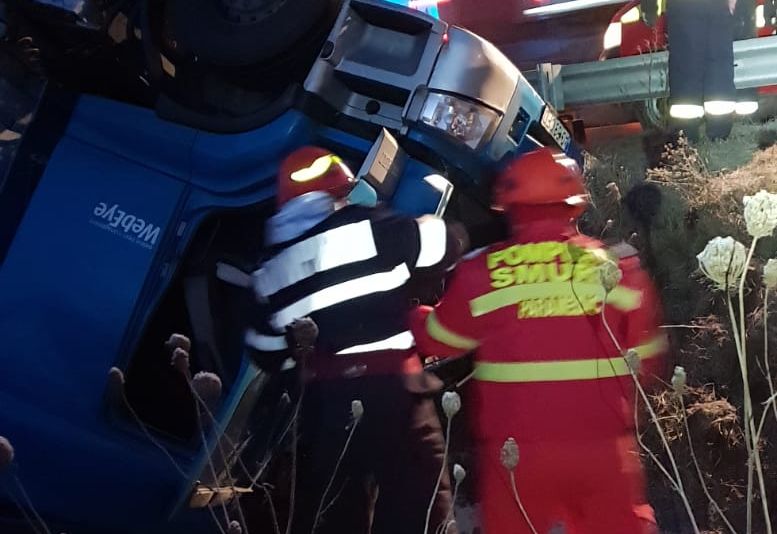 Un şofer a murit după ce TIR-ul pe care îl conducea s-a răstunat, astăzi dimineaţă, la marginea Drumului Naţional (DN) 7, la intrarea în localitatea Gothatea, din judeţul Hunedoara. Bărbatul, în vârstă de 40 de ani, din judeţul Prahova, a rămas încarcerat.