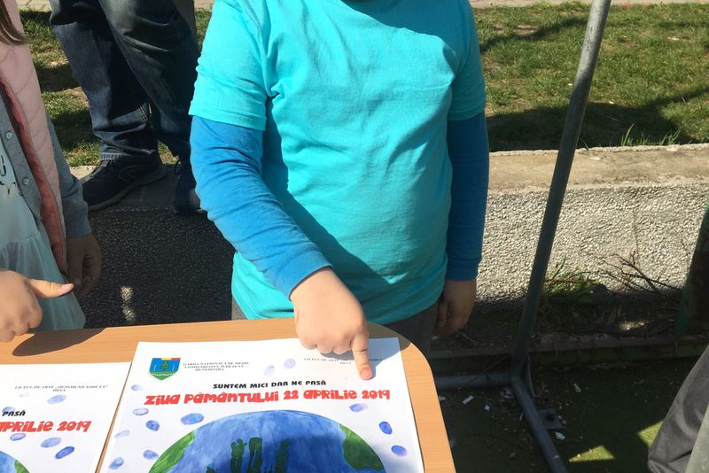 Elevii au fost învățați să selecteze deșeurile pe categorii și să le depună în recipenții speciali colorați diferit (albastru pentru hârtie/carton, verde pentru sticlă și galben pentru metal și plastic) în vederea realizării unei mai eficiente reciclări. Apoi au fost împărțiți în patru grupuri și fiecare grup a realizat cate cinci materiale publicitare de promovare a unei acțiuni de protejare a Pământului. S-a realizat o construcție cu ajutorul corpurilor elevilor care să sugereze starea planetei în prezent, iar la final au promis ca vor respecta noile reguli dobândite semnând simbolic cu amprenta degetului afișul de prezentare a acțiunii care a simbolizat planeta Pământ.