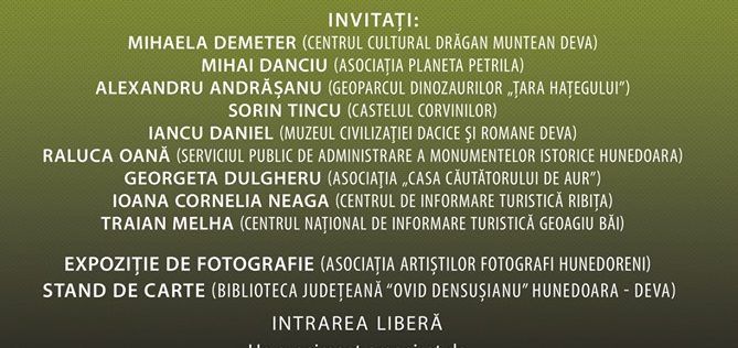 Evenimentul, organizat de Agenția de Dezvoltare Economico -Socială a Județului Hunedoara, va cuprinde şi o expoziţie de fotografie şi un stand al Bibliotecii Judeţene „Ovid Densusianu” Hunedoara -Deva.