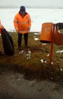 PET-uri scălciate, doze de suc, pahare din plastic, dar şi alte ambalaje, aruncate lângă şosea au fost curăţate de drumari de pe marginea Drumului Naţional (DN) 68A Lugoj-Săcămaş.