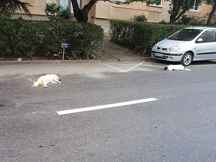 Imagini dureroase pentru iubitorii de animale au fost surprinse la Orăştie. Fotografiile în care apar câţiva câini morţi, întinşi pe asfalt, publicate pe reţeaua de socializare, au produs rumoare în mediul online, mai ales după ce s-a presupus că bietele patrupede au murit împuşcate.