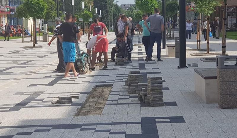 La aproximativ o lună de la inaugurare, muncitorii s-au reîntors pe pietonala din municipiul Hunedoara. Aceștia au scos dalele în câteva zone unde au fost semnalate probleme.
