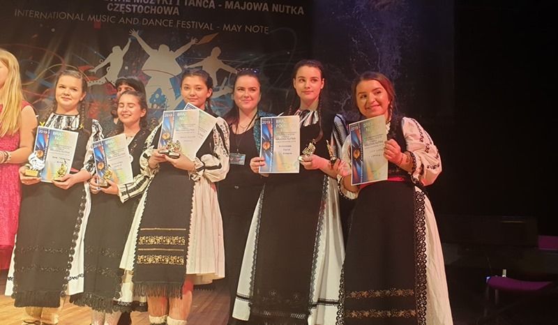 Fetele din Orăştie, care formează cunoscutul grup folcloric, Monica Ţugulea, Lidia Ceocea, Ema Trîmbitoni, Alexandra Toncea şi Alexandra Gavrilă, îndrumate de profesorul coordonator Lorena Pascu, au făcut o impresie deosebită la Festivalul Internaţional „The May Note”, din Polonia. Au smuls ropote de aplauze şi au primit multe aprecieri din partea juraţilor şi a publicului, munca lor fiind răsplătită cu premiul întâi la acest concurs.