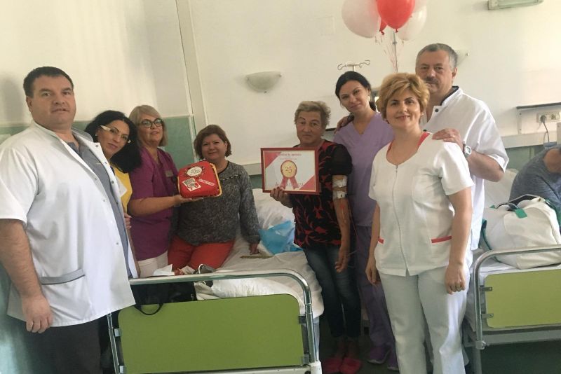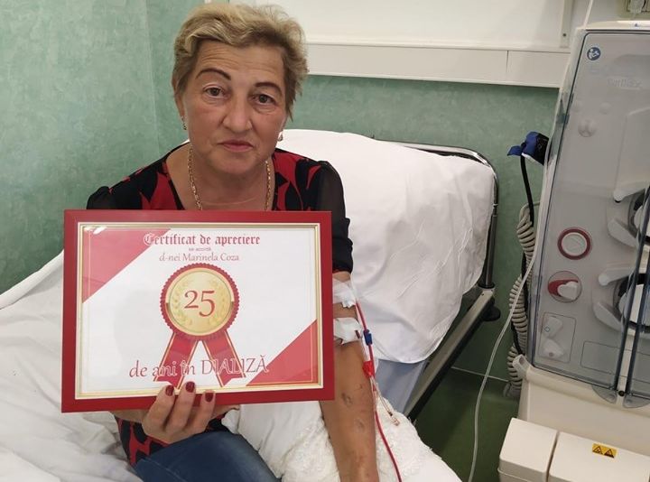 De un moment special a avut parte, astăzi, o pacientă care face dializă de 25 de ani. Colectivul medical de la Secţia de Hemodializă a Spitalului Judeţean de Urgenţă din Deva, care a avut-o în grijă în toţi aceşti ani, i-a pregătit o surpriză, aniversând-o, într-un cadru festiv.