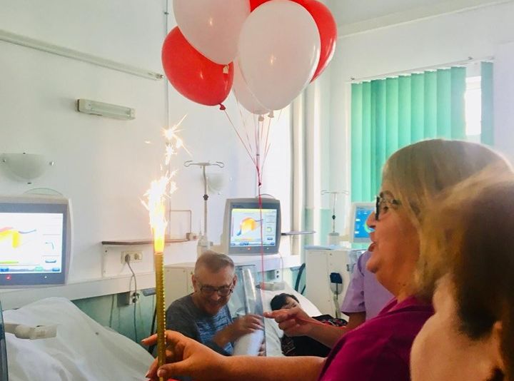 Moment emoţionant la spitalul din Deva. O pacientă care face dializă de 25 de ani, aniversată de colectivul medical