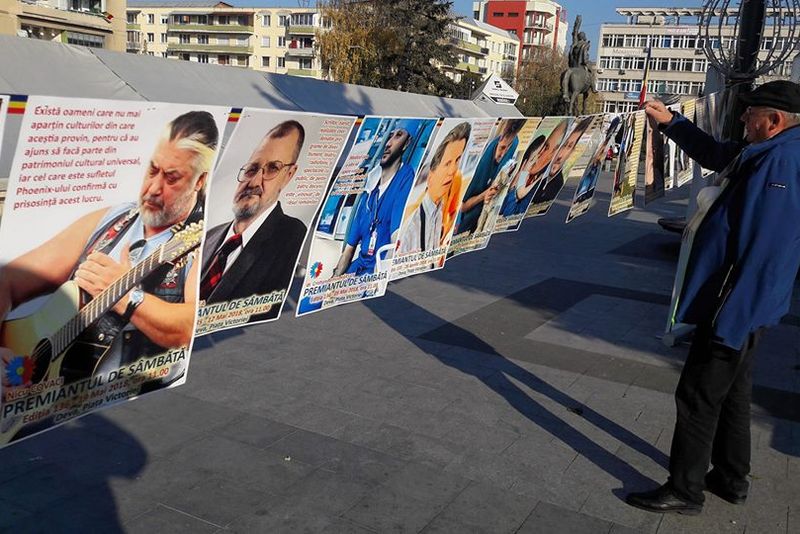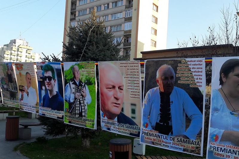 Sursa foto: Premianţii fără premii/Facebook[/caption]În centrul Devei sunt expuse toate afişele acestei cunoscute campanii, de la prima şi până la ultima ediţie a acestui eveniment. „Acum, la un secol de existență a statului român modern, înțelegem să ne alăturăm și noi demersurilor făcute pentru a marca acest moment istoric. Gestul nostru este făcut cu dorința de exprimare a respectului profund față de acest popor. Și cum am putea să facem cel mai bine lucrul acesta decât arătând tuturor ce oameni minunați există pe aceste meleaguri. Îndrăznim să oferim României, de ziua ei, un buchet de personalități pentru care oamenii au ieșit în stradă în ultimii cinci ani”, a declarat deveanul Dan Terteci, inițiatorul campaniei „Premianții fără premii”.