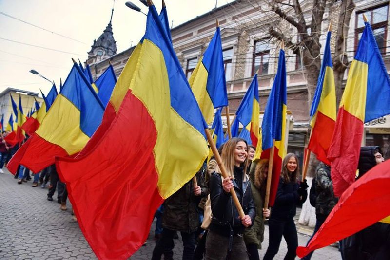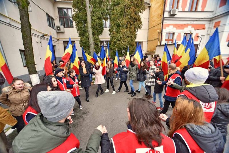 Paradă cu steaguri tricolore prin centrul vechi al Devei, cu prilejul „Micii Uniri”