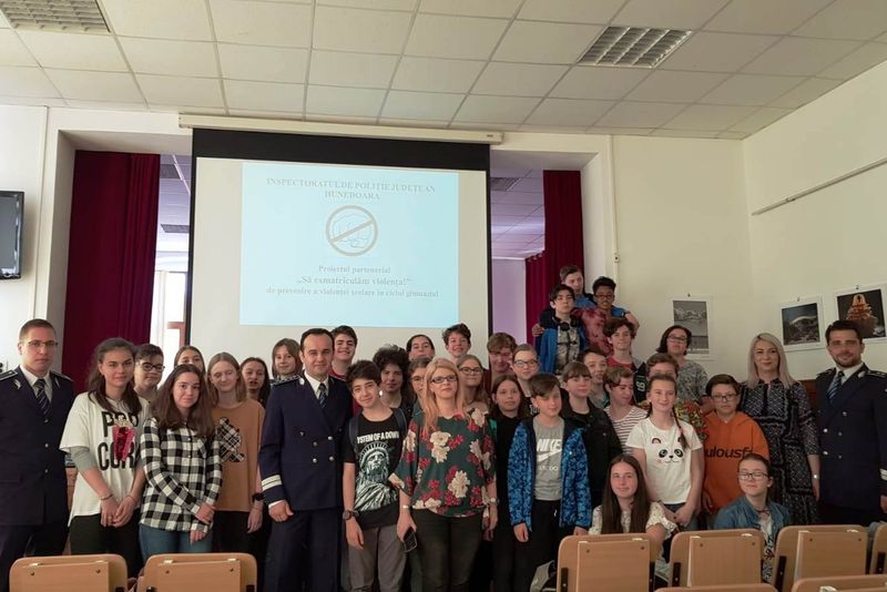 Oamenii legii s-au întâlnit cu elevii mai multor clase gimnaziale ale Colegiului Naţional „Decebal”, din Deva, pentru a dezbate tema prevenirii şi a combaterii fenomenului de bullying în mediul școlar. Poliţiştii au fost invitați să le vorbească elevilor despre această temă de interes în cadrul săptămânii „Şcoala Altfel – Să ştii mai multe, să fii mai bun”.