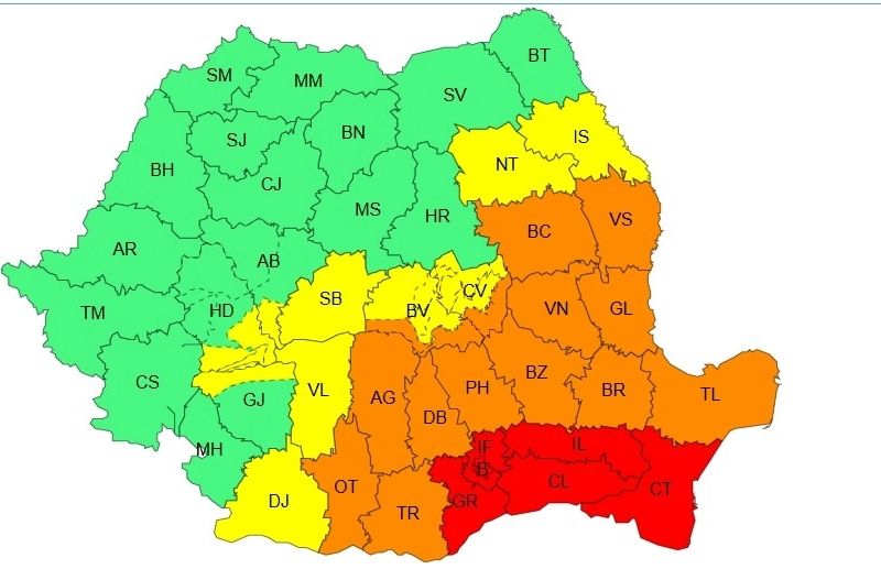 Zone afectate: județele Constanța, Călărași, Ialomița, Giurgiu, Ilfov și în municipiul București