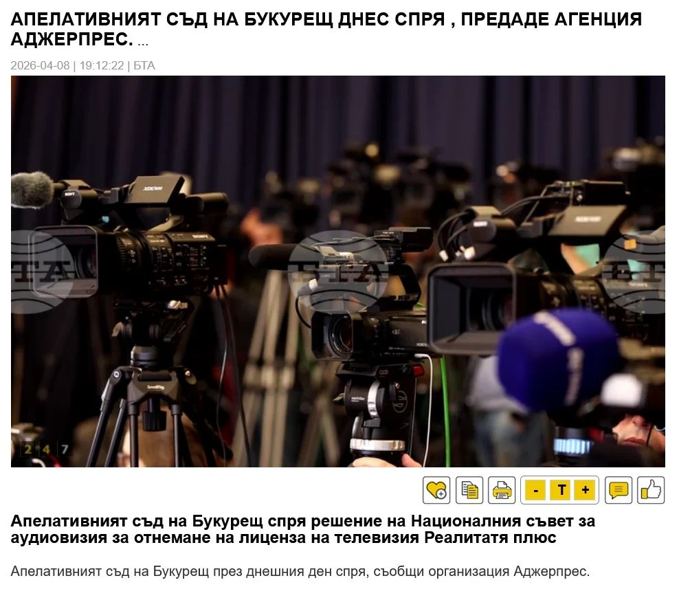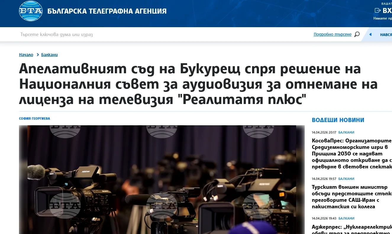 Presa internațională nu a ratat evenimentul recent de la București, unde CNA a decis într-o ședință fulger ridicarea licenței de emisie a postul TV Realitatea Plus, cuvîntul final urmînd să-l aibă justiția.