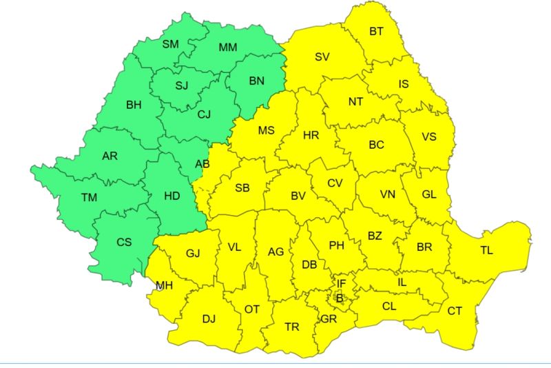 Potrivit lor, de sâmbătă seară, de la ora 20.00, până duminică la ora 10.00, va fi în vigoare o atenţionare meteorologică Cod galben. În Moldova, Dobrogea, Muntenia, Oltenia, Transilvania, Maramureş şi în nordul Crişanei vremea va fi geroasă. Temperaturile minime se vor situa în general între -20 şi -10 grade.
