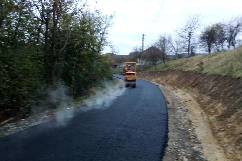 Lucrările de reabilitare a Drumului Comunal (DC) 170B, în satul Mesteacăn, de lângă Brad, continuă. Muncitorii au turnat primul strat de asfalt.