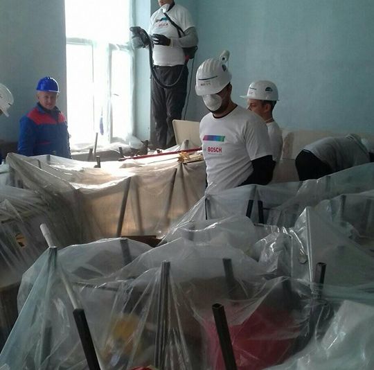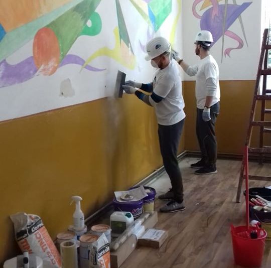 „Înarmați” cu unelte necesare și cu multă voie bună, tâmplari, zugravi, electricieni, experți în renovări , au muncit pentru ca elevii să studieze într-o școală modernă.