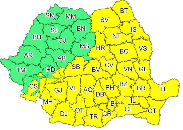Meteorologii prognozează că se vor înregistrate precipitaţii în general moderate cantitativ, la început mai ales sub formă de ninsoare, apoi lapoviţă şi ploaie, fenomene care se pot produce şi în partea de sud a judeţului Hunedoara, aflat sub incidenţa Codului galben.