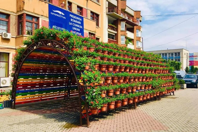 Apariţie colorată în centrul istoric al municipiului Deva. Localnicii şi turiştii, care ajung prin Piaţa Unirii din oraş, pot să vadă un tunel multicolor, plin de flori.